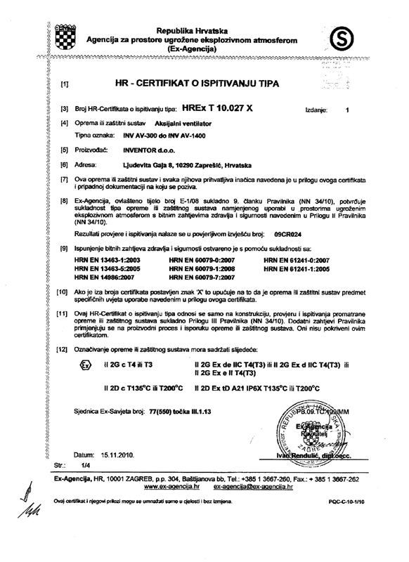 Od samog nastanka tvrtke, posebnu pažnju polagali smo valjanosti naše opreme prema hrvatskim i europskim standardima, te naravno adekvatnom potvrđivanju kvalitete i pouzdanosti. Uz ISO 9001 certifikat tvrtke, za sve proizvode imamo ishođene važeće ateste od nadležnih ovlaštenih ustanova u RH, prvenstveno Ex-Agencije te Hrvatskog Registra Brodova.